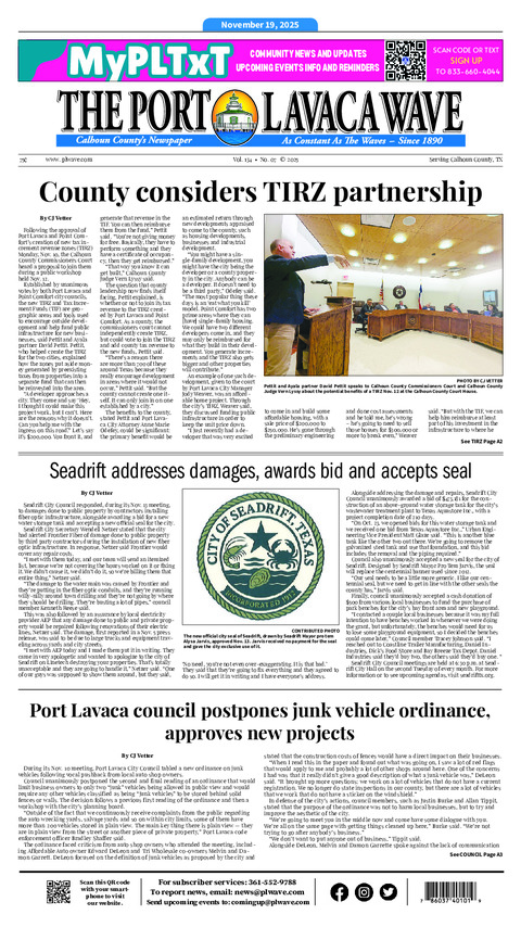 Following the approval of Port Lavaca and Point Comfort’s creation of new tax increment revenue...